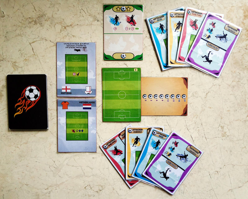 A soccer micro game, full of bluff and double-bluff! Players: 2 Playtime: 17 mins Components: 17 cards TEAM CARDS expansion contains 8 teams: Brazil, Germany, Italy, Argentina, Spain, England, France, Netherlands. Tournament: a 4-5 player tournament will need 2 copies, a 6-7 player tournament will need 3 copies. |